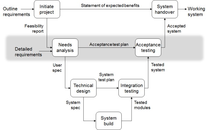 Looking at the detail of project management, on page 70 the book presents the 'V model' as an alternative to the 'Waterfall model':