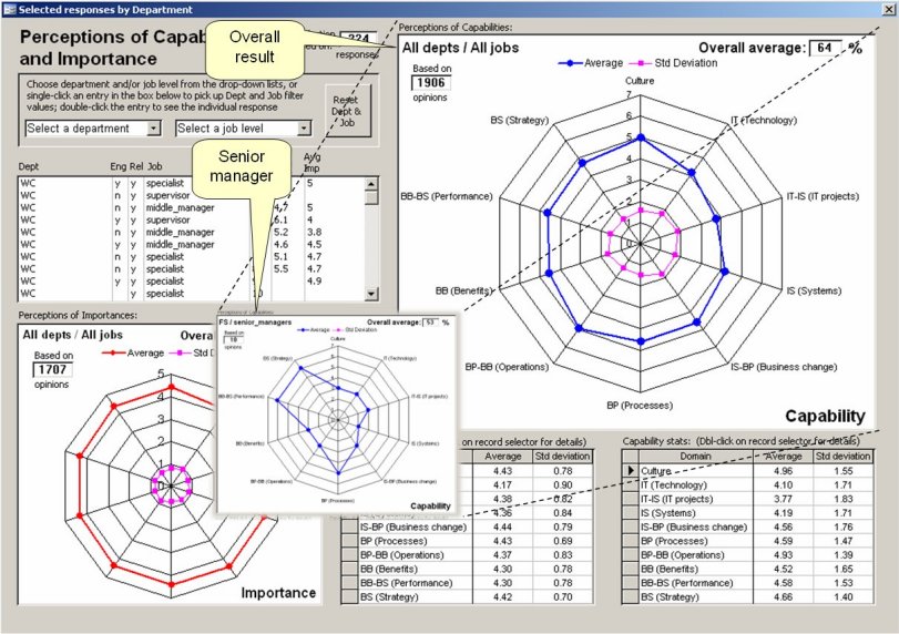 There is a survey tool that will allow organisational management to assess how well they are doing with information management, compared to a wide range of other organisations. This can be combined with more detailed analysis of the situation on a project-by-project or system-by-system basis, and works best when a range of interested persons (business managers, IT managers, staff at all levels) can be invited to become involved.